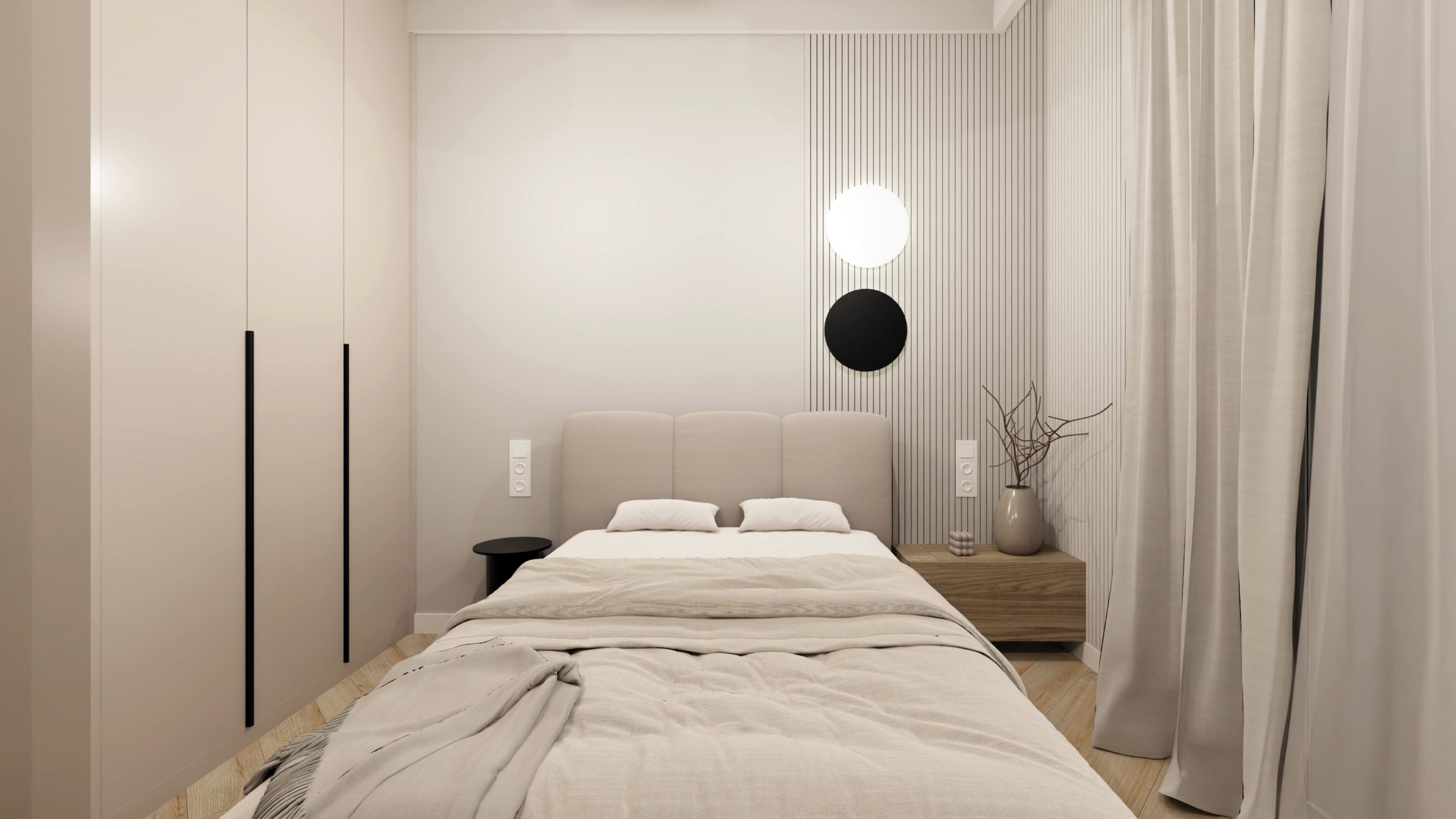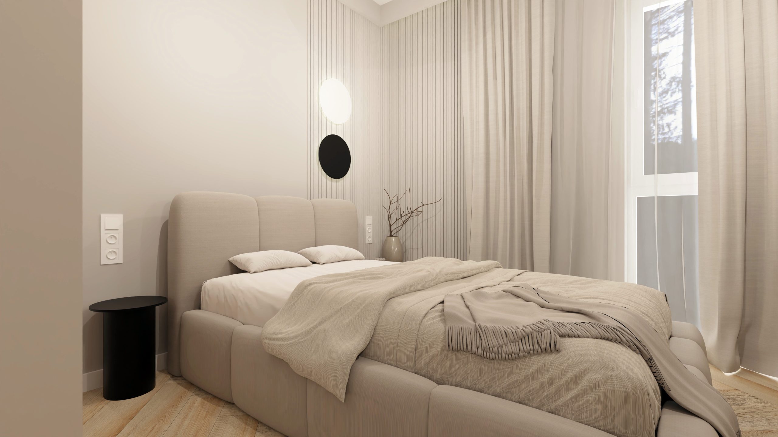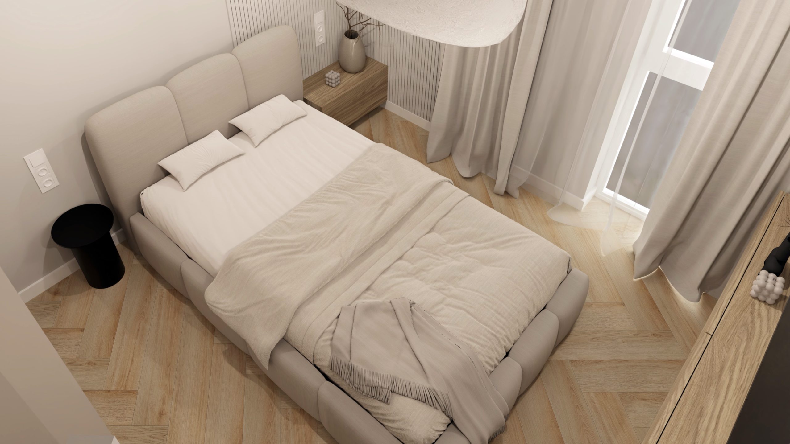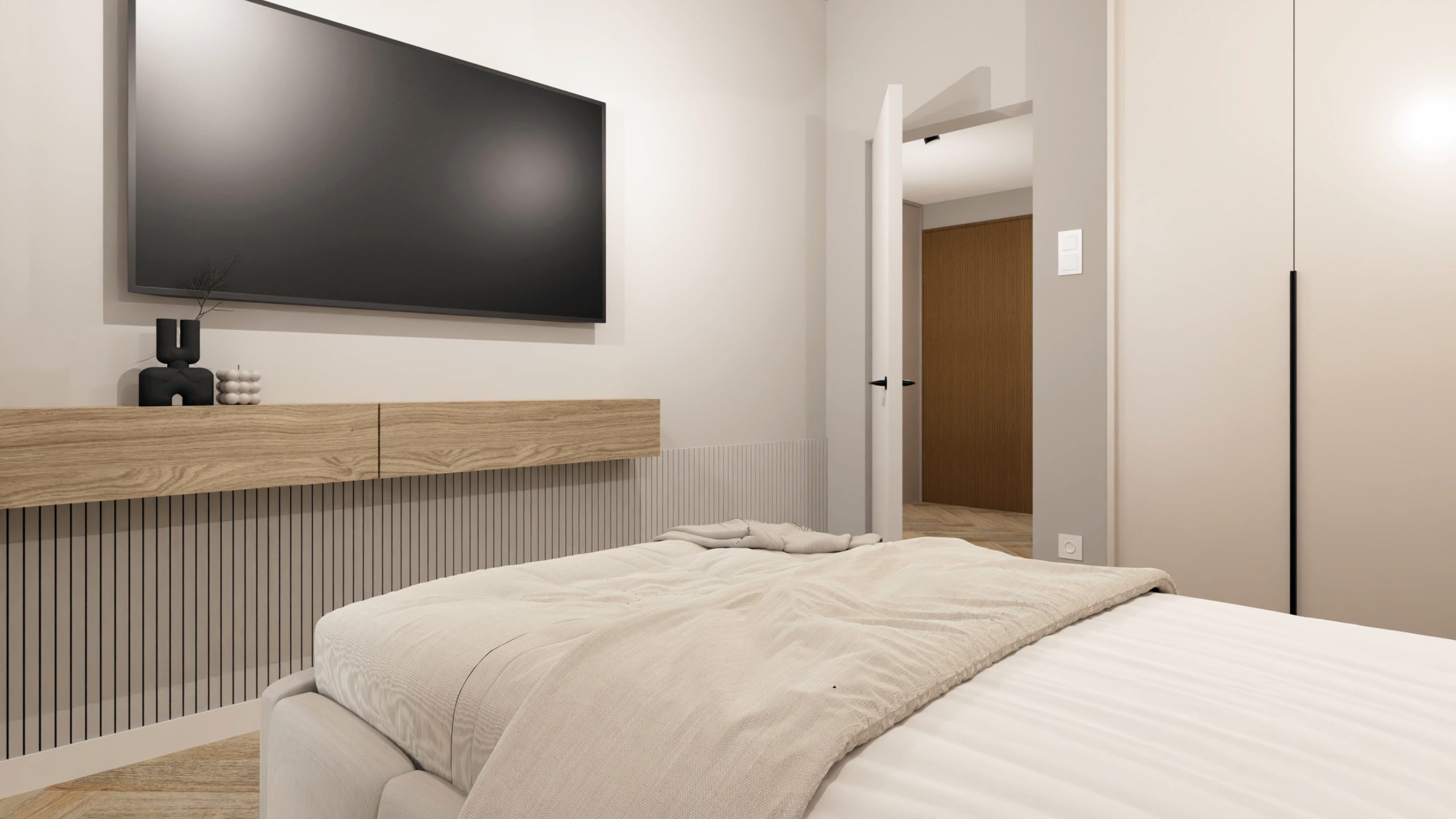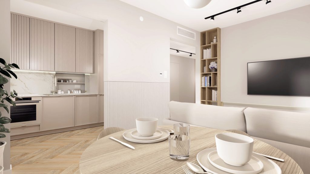 Minimalistyczna aranżacja, w której naturalne światło, jasne drewno i delikatne detale architektoniczne tworzą spokojną, zbalansowaną przestrzeń. Projekt oparty na prostocie, funkcjonalności i ciepłej neutralnej kolorystyce – zaprasza do wnętrza, które daje wytchnienie i sprzyja codzienności.
