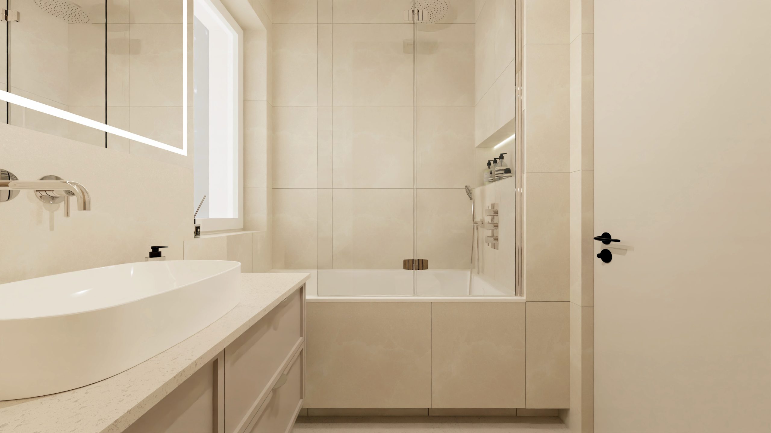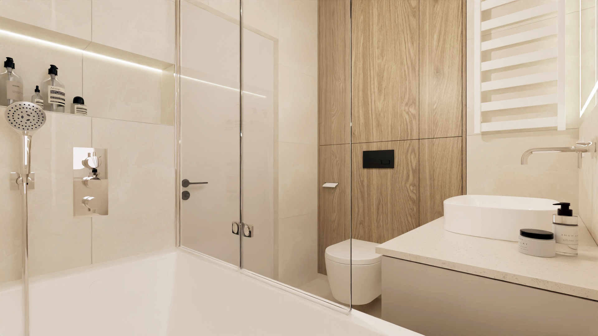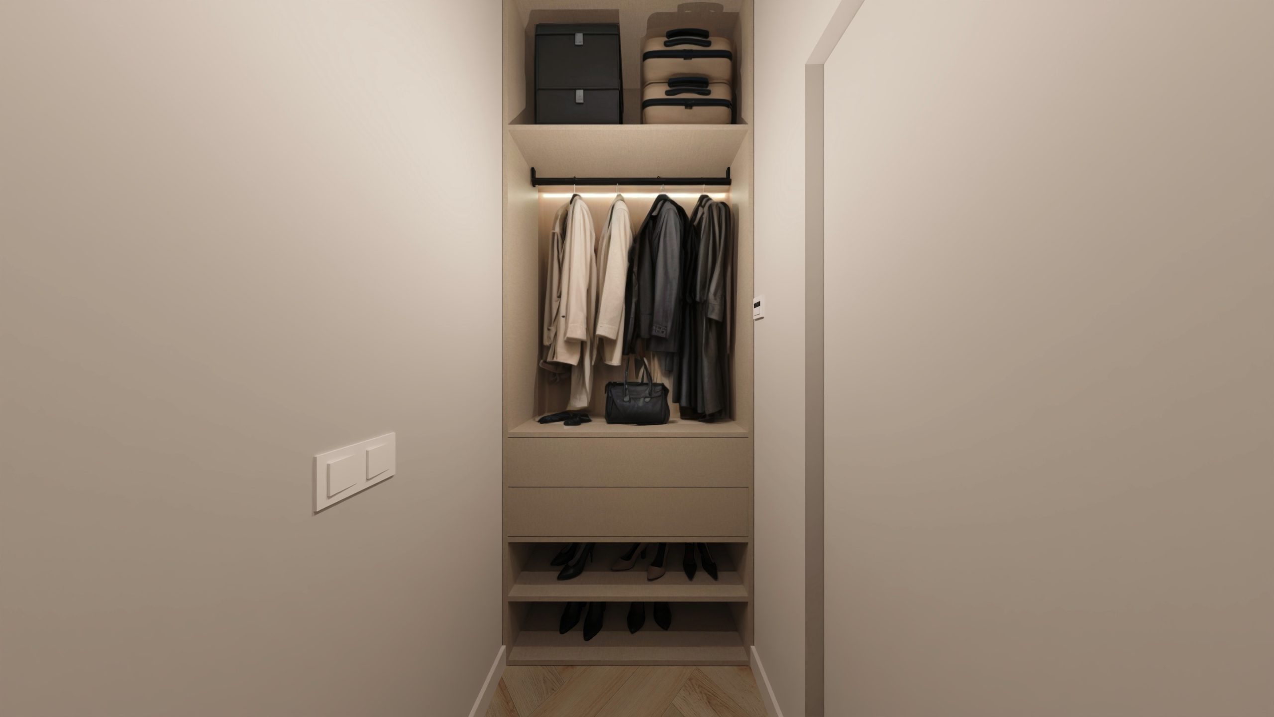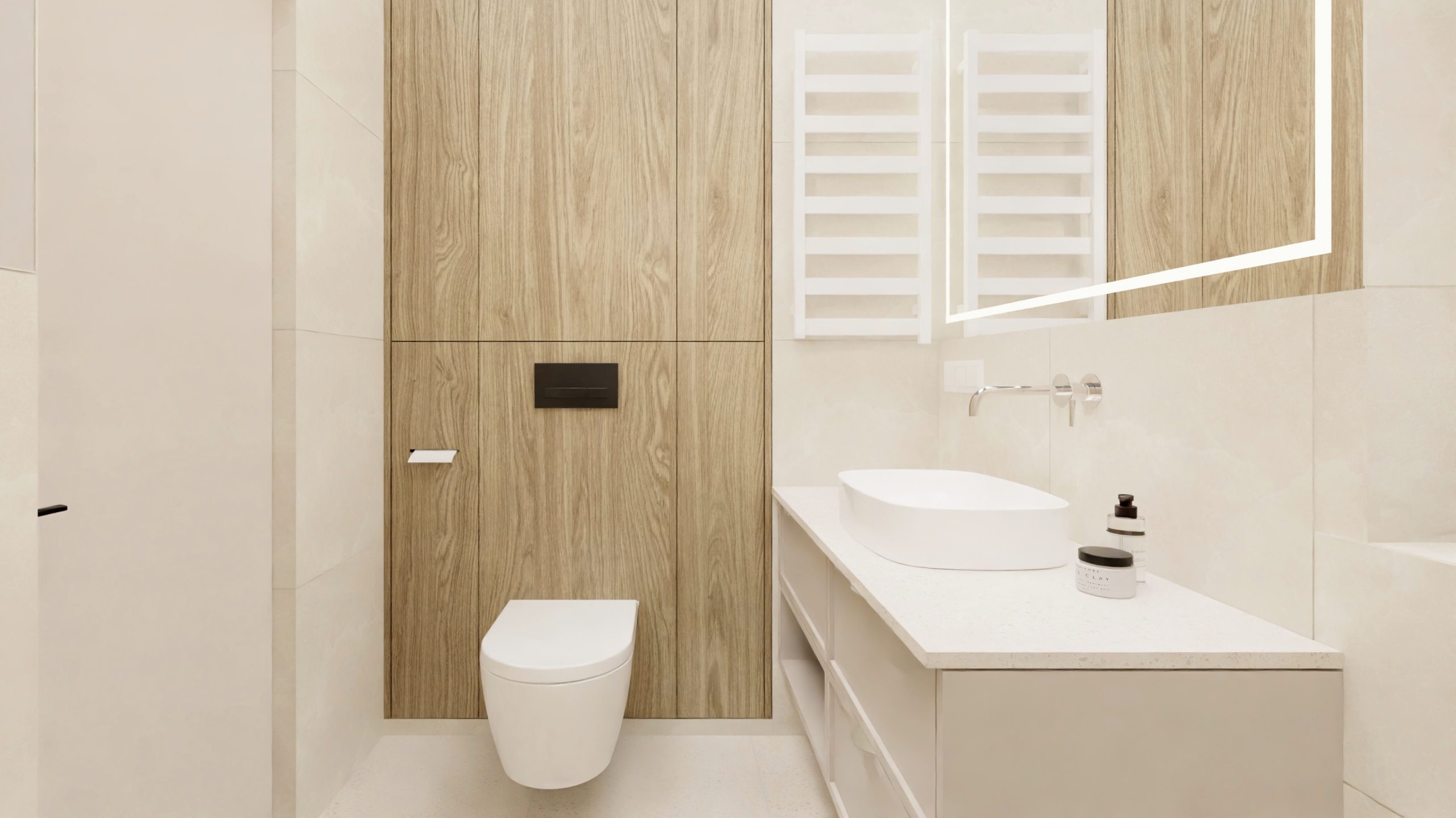 Minimalistyczna aranżacja, w której naturalne światło, jasne drewno i delikatne detale architektoniczne tworzą spokojną, zbalansowaną przestrzeń. Projekt oparty na prostocie, funkcjonalności i ciepłej neutralnej kolorystyce – zaprasza do wnętrza, które daje wytchnienie i sprzyja codzienności.